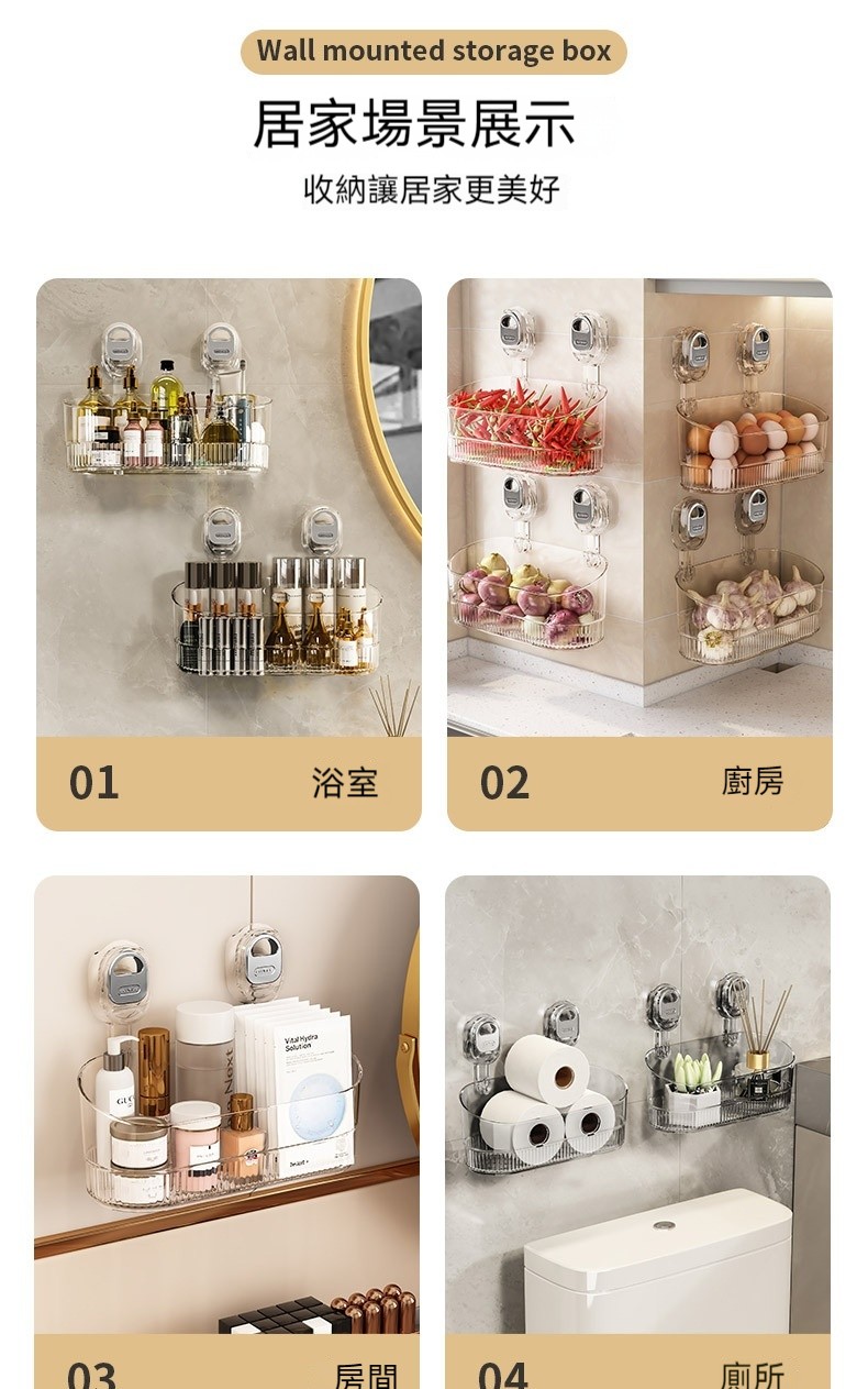 半小時前桌上总是乱糟糟?试试這個 #免打孔吸盤置物架 免鑽孔不傷牆!隨心換位不留痕!乾淨整潔收納無拘束! - 【均價319】五入組NT$1599