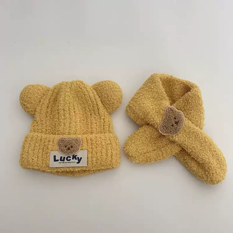 20分鐘前嬰兒帽子秋冬季可愛小熊寶寶毛絨護耳帽圍巾套裝保暖男女童套頭帽 - 商家推薦95%客戶選擇2入組NT$1199
