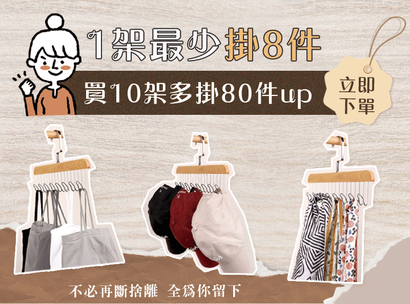 2分鐘前【多功能掛鉤衣架】貼身衣褲隨拿隨放 一目了然不翻找 - 8入組NT$1398