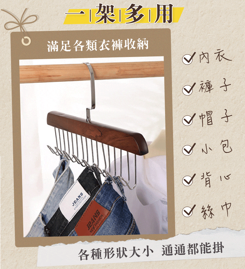 20分鐘前【多功能掛鉤衣架】貼身衣褲隨拿隨放 一目了然不翻找 - 8入組NT$1398