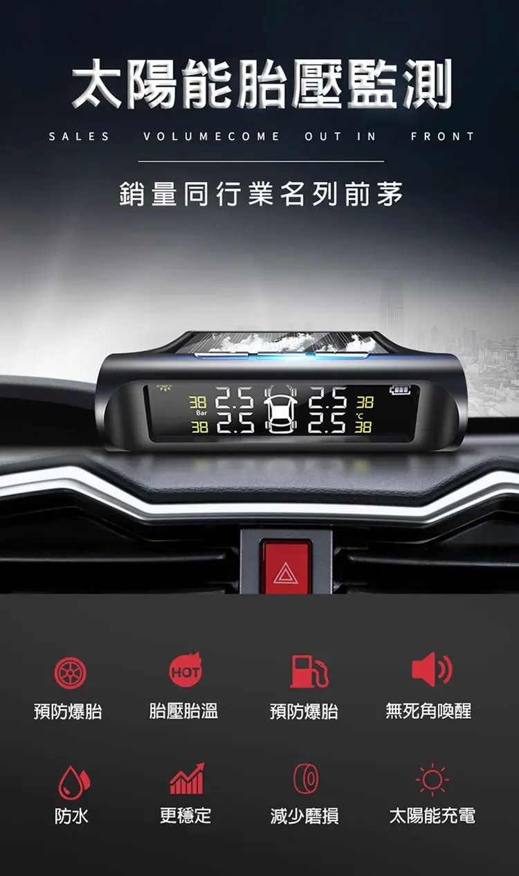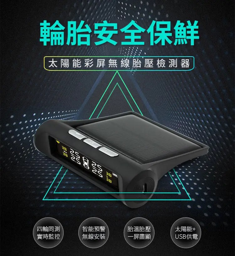 半小時前【官方站】太陽能無線胎壓監測器 輪胎盡在掌控!【太陽能 胎壓監測器】漏氣警報,胎壓警報,胎溫警報【太陽能電光板】無需佈線,可任意擺放!適用於所有輪胎,安裝超簡單,一看就會! - 【太陽能 胎壓監測器】