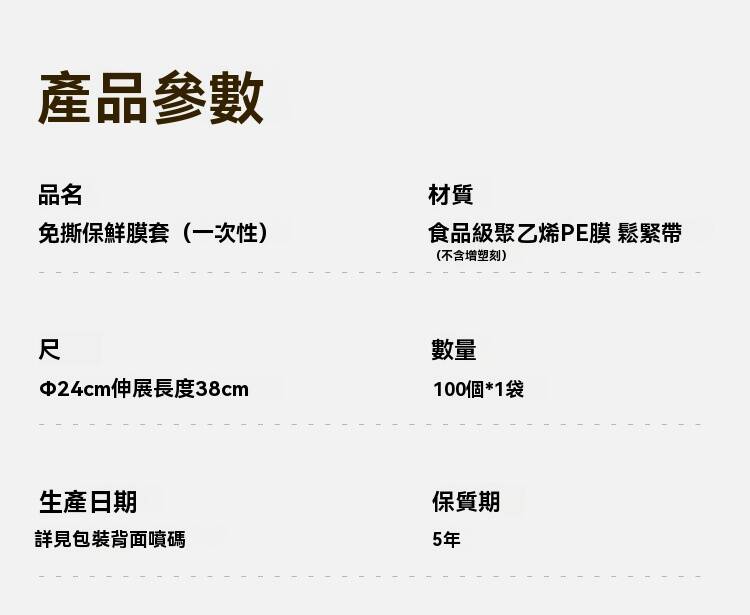 5分鐘前新款保鮮膜套 食品級材質,彈力縮口,任何大小、形狀都能輕鬆套上,保鮮不跑味,方便快速,乾淨衛生,廚房必備好物! - 超夯特惠:五入組(500個)NT$998 再贈送驚喜禮品一份!-NT$998