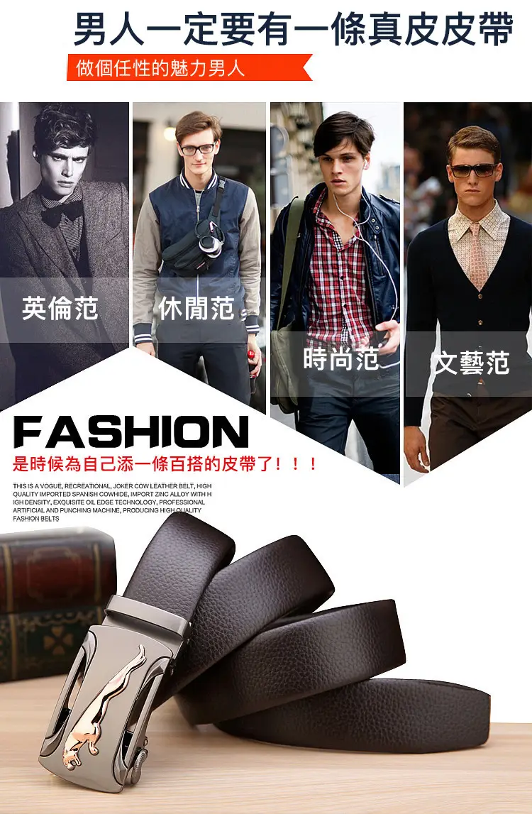 7分鐘前【官方站】男士獵豹自動扣真皮腰帶 【能用十年的真皮腰帶】 整張牛皮裁剪打造,純手工製作,耐磨耐折耐用,品質高端,彰顯男士成熟魅力