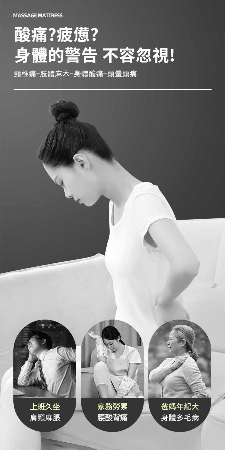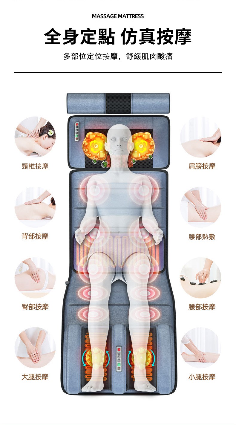 7分鐘前多功能全身按摩床墊 | 電動加熱頸椎、腰部、背部、腿部全方位按摩器,舒緩身心疲勞 - 6鍵旗艦款(6鍵揉捏+震動+氣囊+10電機+腰部熱敷)