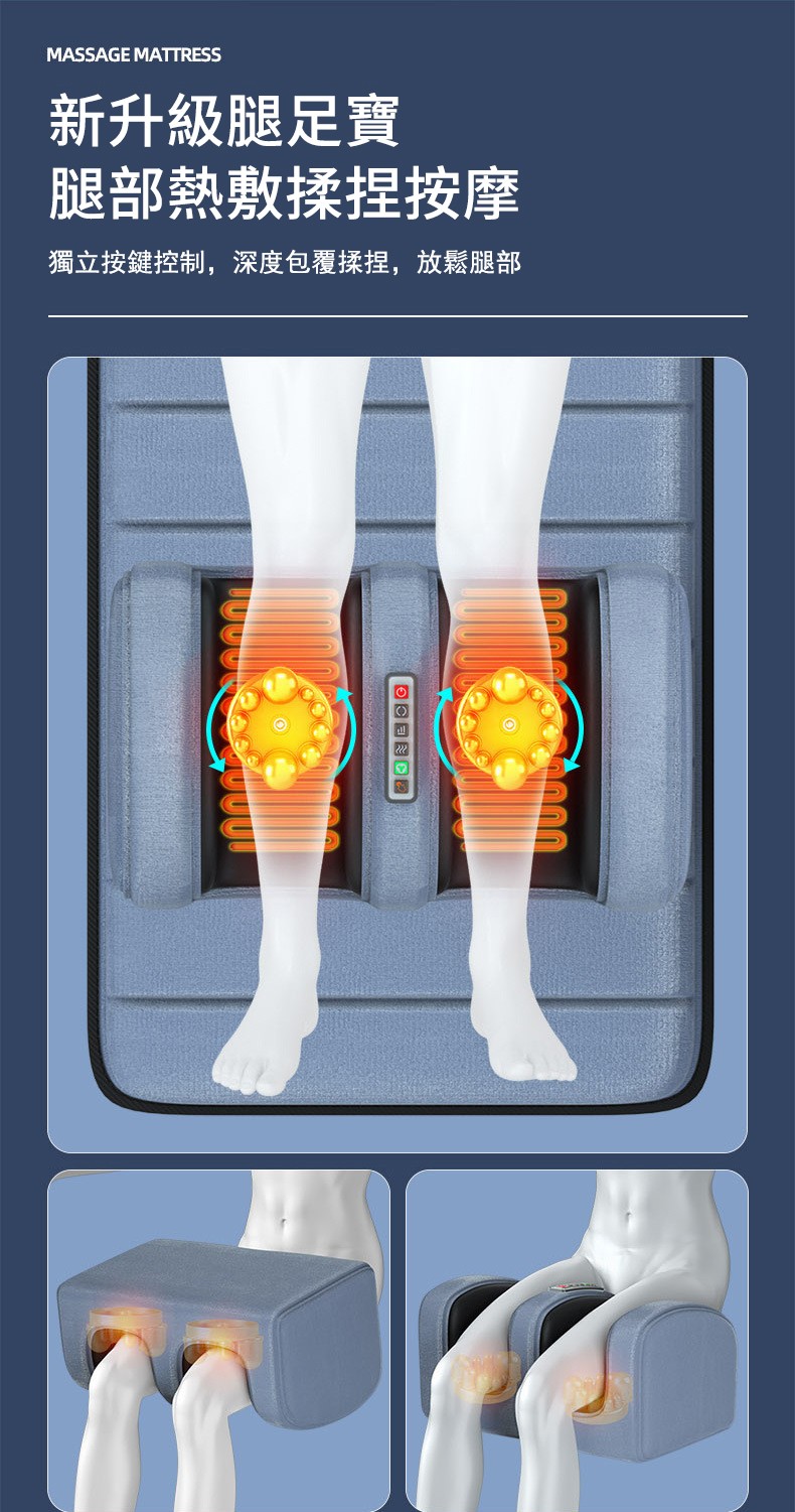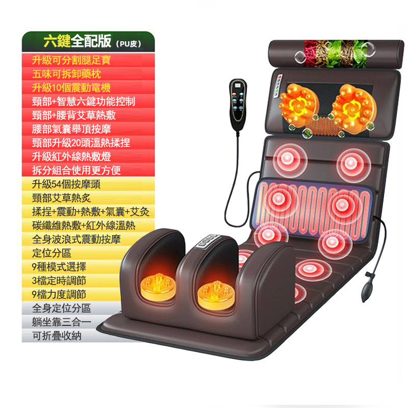 20分鐘前多功能全身按摩床墊 | 電動加熱頸椎、腰部、背部、腿部全方位按摩器,舒緩身心疲勞 - 豪華皮質款五合一可拆卸(藥枕+頸部滾輪+震動加熱+【腿部加熱揉捏】)