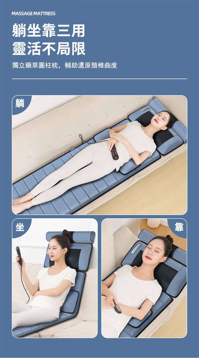 15分鐘前多功能全身按摩床墊 | 電動加熱頸椎、腰部、背部、腿部全方位按摩器,舒緩身心疲勞 - 6鍵旗艦款(6鍵揉捏+震動+氣囊+10電機+腰部熱敷)
