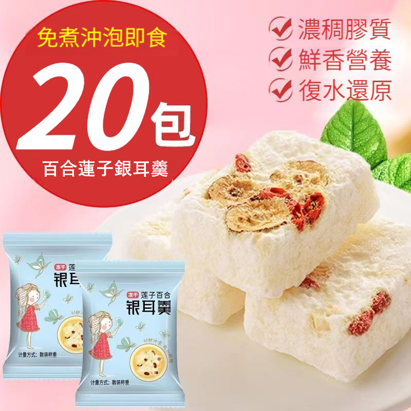 半小時前冻干银耳羹红枣雪梨枸杞莲子免煮速食低脂零食冲泡微甜银耳羹 - 【20包】僅需920