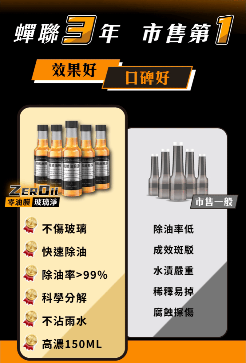 2分鐘前ZEROil零油膜玻璃淨視線不清晰行車不安全一罐輕鬆去油膜 - 【個人組】買3送3 / 贈清潔品*1