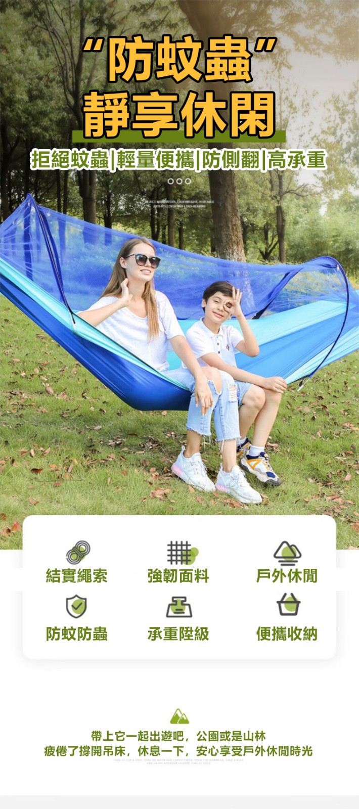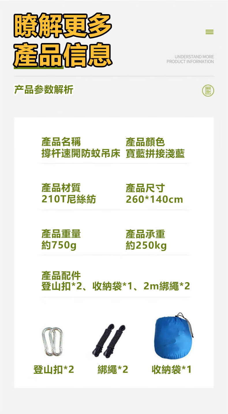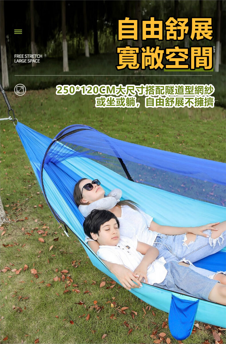4分鐘前全自動速開戶外帶蚊帳吊床 - 【限時下殺】承重700公斤 速開蚊帳吊床【帶蚊帳 三米綁繩 8號扣】/2入組NT$2098