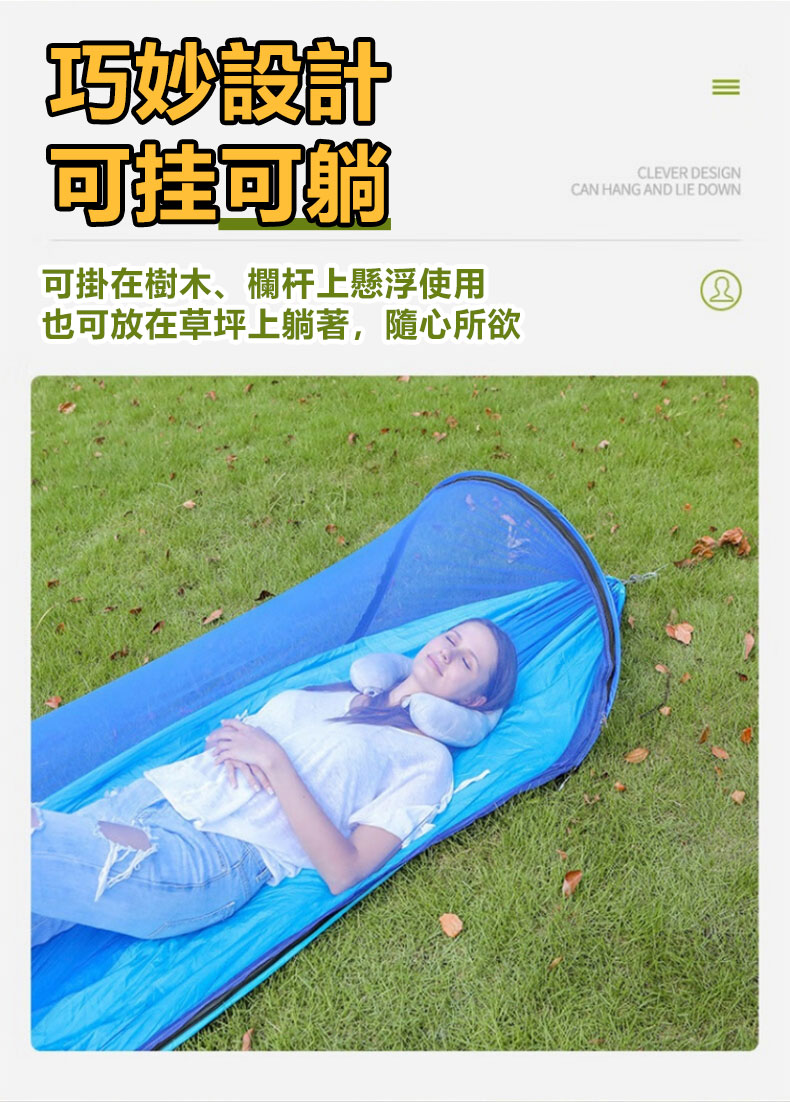 11分鐘前全自動速開戶外帶蚊帳吊床 - 【創意嘗鮮】承重700公斤 速開蚊帳吊床【帶蚊帳 三米綁繩 8號扣】/1入組NT$1298