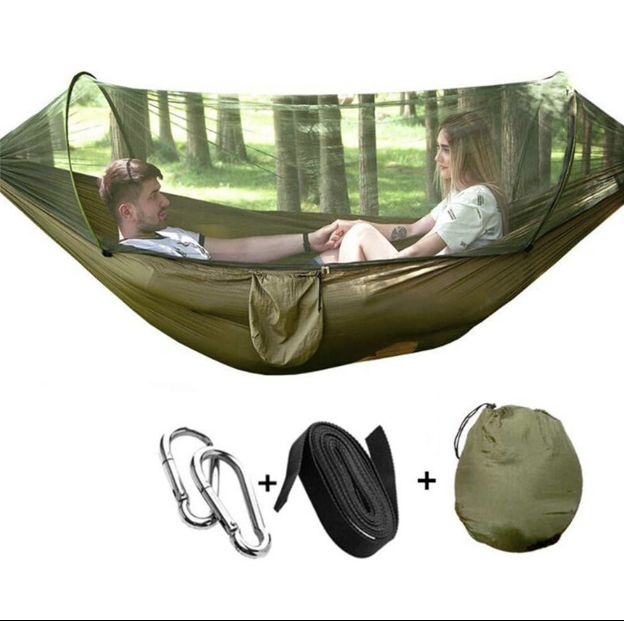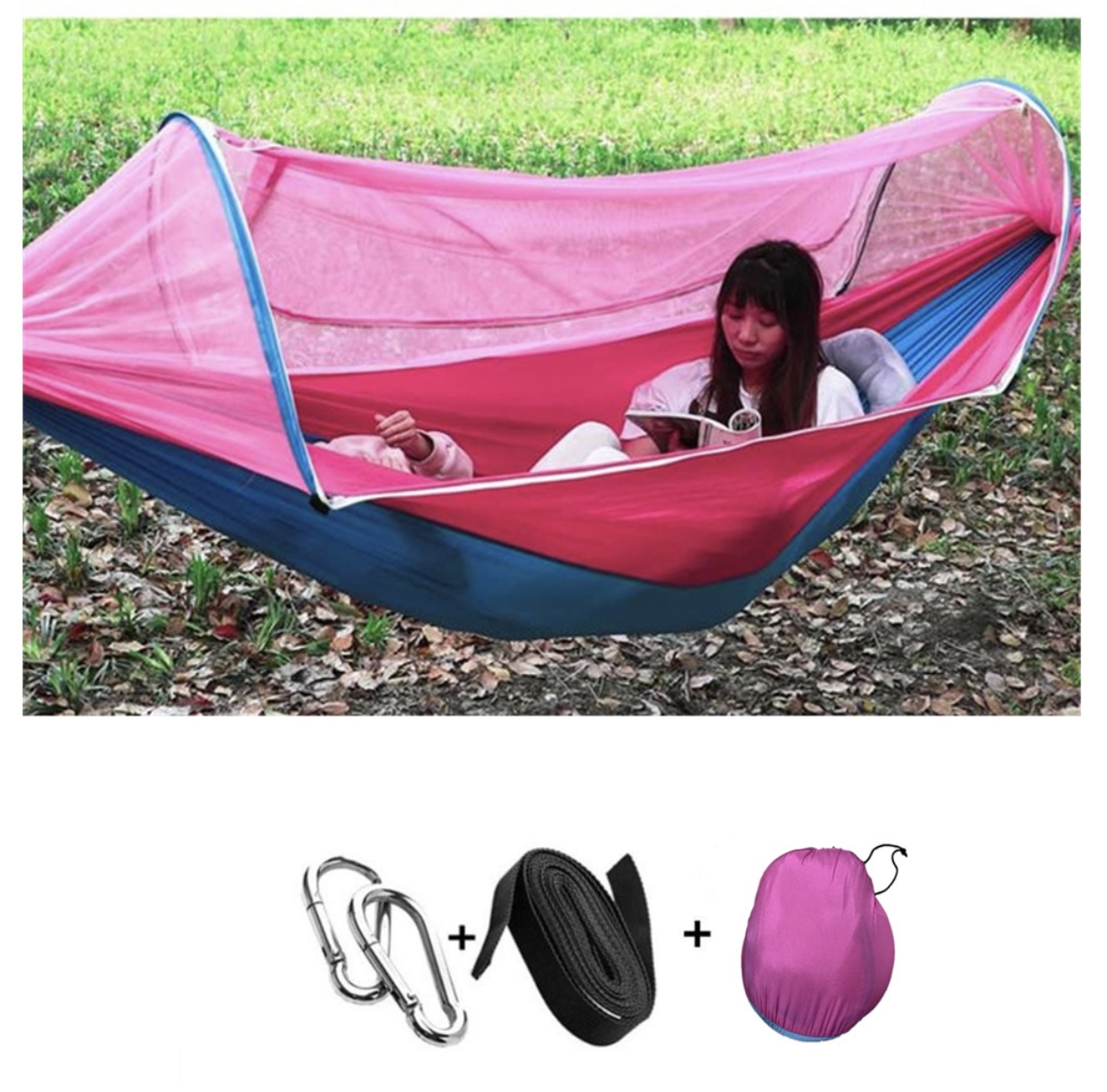15分鐘前全自動速開戶外帶蚊帳吊床 - 【限時下殺】承重700公斤 速開蚊帳吊床【無蚊帳+三米綁繩+8號扣】/2入組NT$1498
